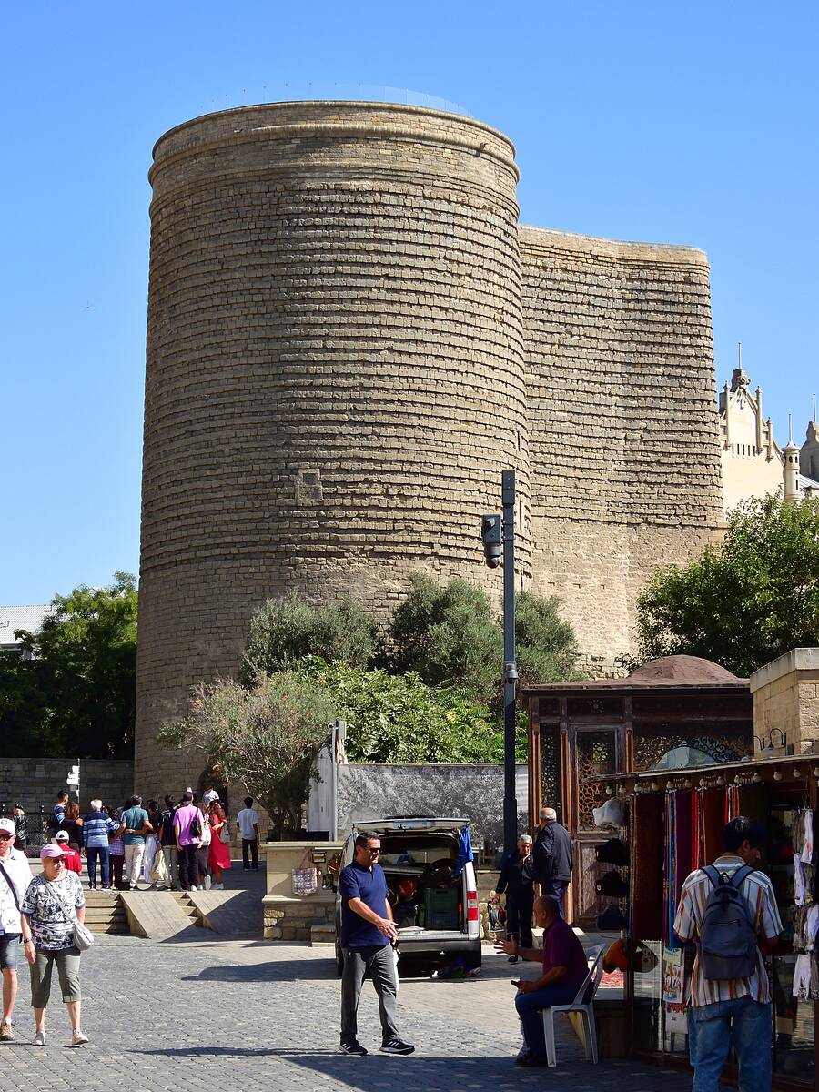 Der Jungfrauenturm (Qiz Qalasi) ist ein bedeutendes Wahrzeichen Bakus. Das Fundament ist aus dem 5. bzw. 6. Jh. Der obere Teil ist aus dem 12. Jh. Er ist 29,5 Meter hoch.