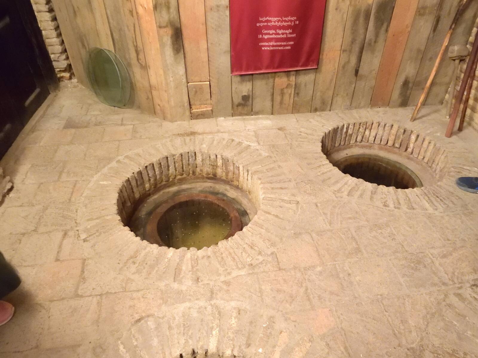 Wir sehen hier die Zisternen in denen die Weintrauben gestampft werden.