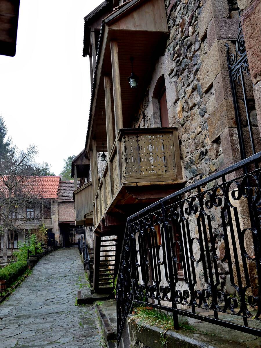 In Dilijan machen wir einen kurzen Spaziergang durch die Künstlerstraße. Leider regnet es.