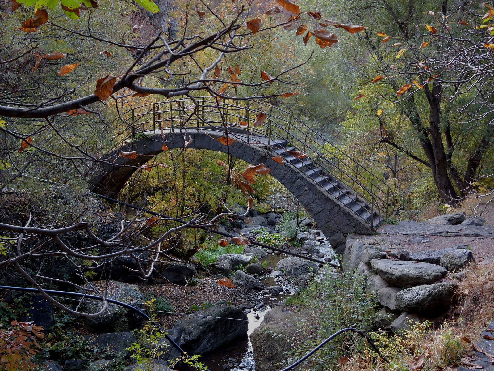 Alte Steinbrücke über einen kleinen Bach.
