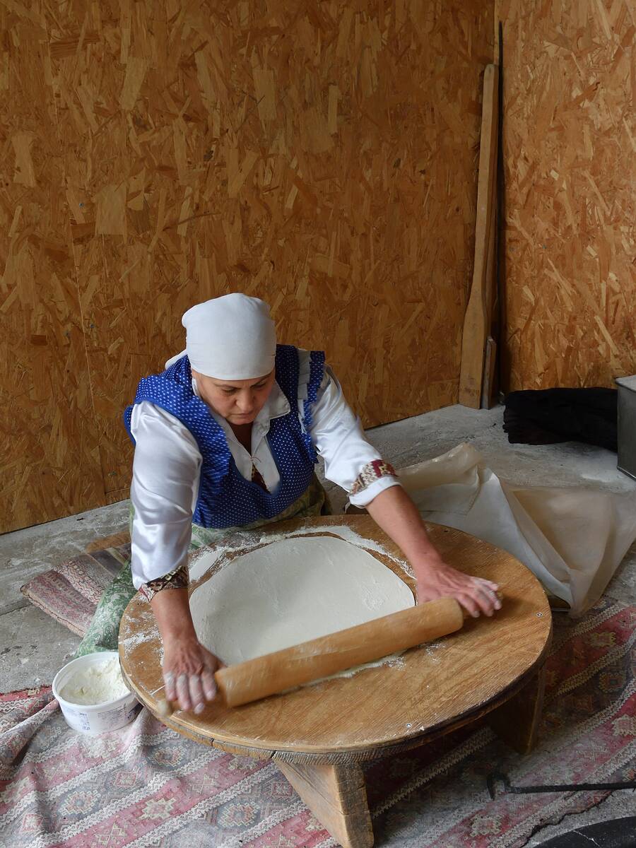 Zuerst mischen und den ungesäuerten Teig ausrollen.
