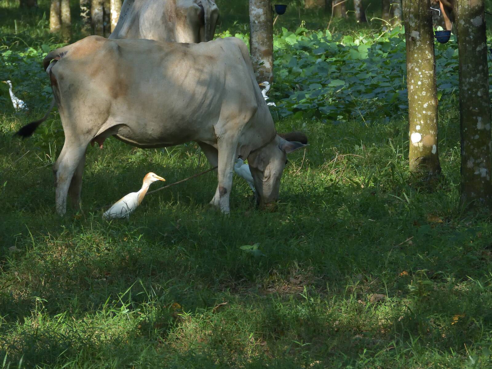 Am Weg nach Parapat machen wir einen kurzen Stopp bei einer Kautschukplantage. Die Gans und die Kuh sind das Empfangskomitee :-).