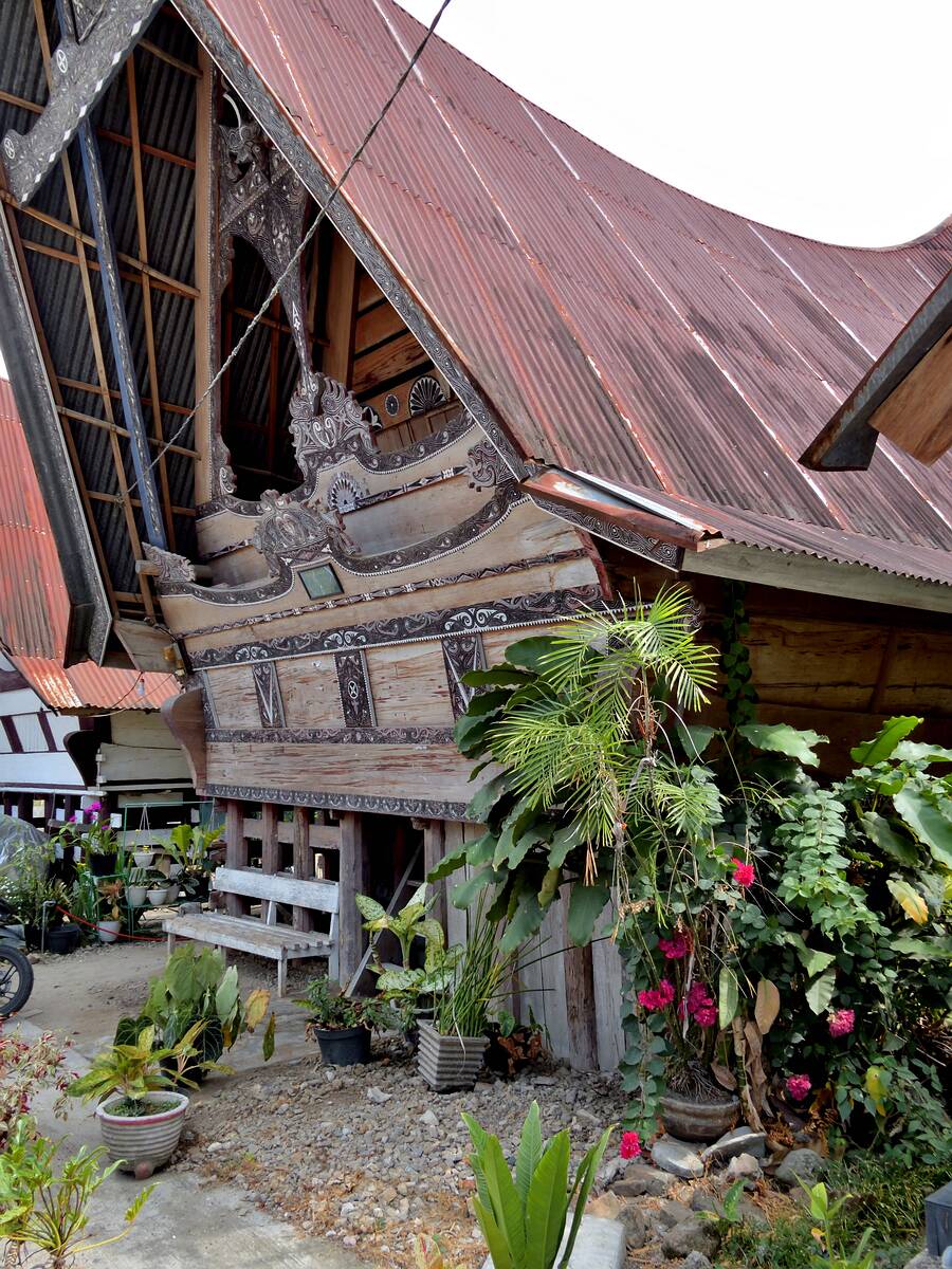 Die Häuser sind kunstvoll mit Schnitzereien verziert. Vor allem Brüste (Fruchtbarkeit) und Geckos (Schutz) findet man.