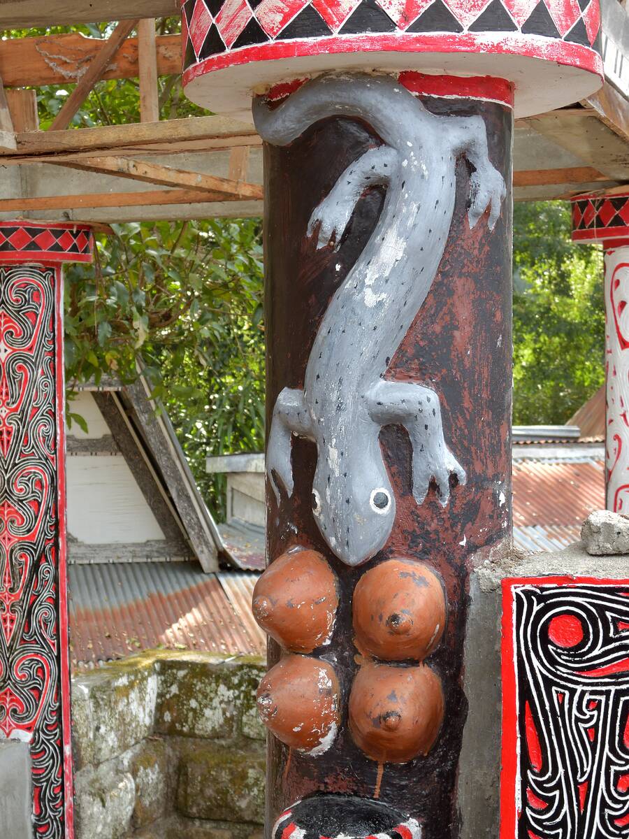 Wieder die Symbole für Fruchtbarkeit und Schutz, die auch auf den Batak-Häusern zu finden sind.