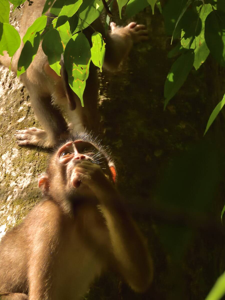 Diese Affen sind gute Kletterer, halten sich aber meist am Boden auf.