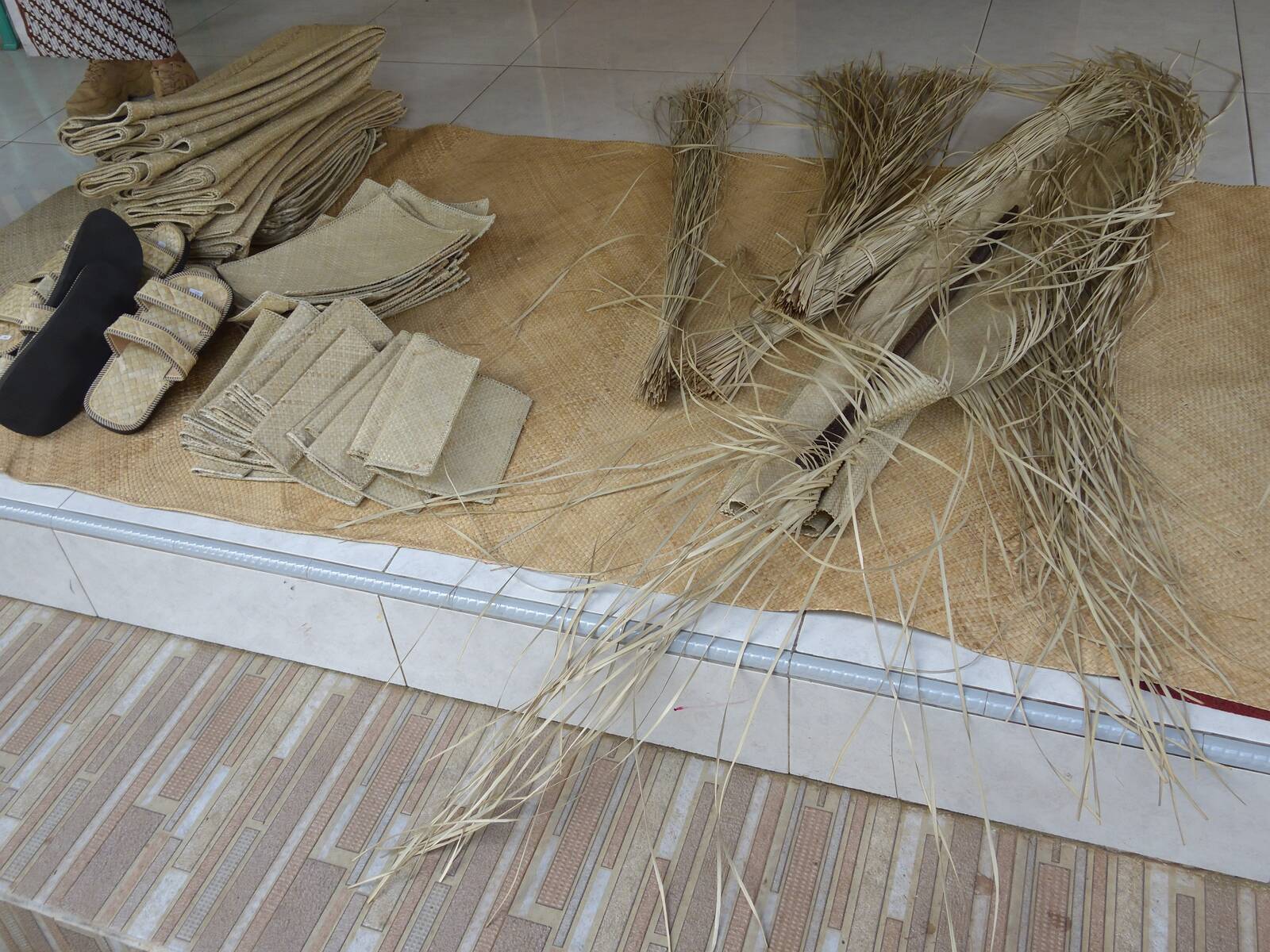 Die Pandanus-Blätter werden zu Taschen, Matten und Sandalen verarbeitet und verkauft.