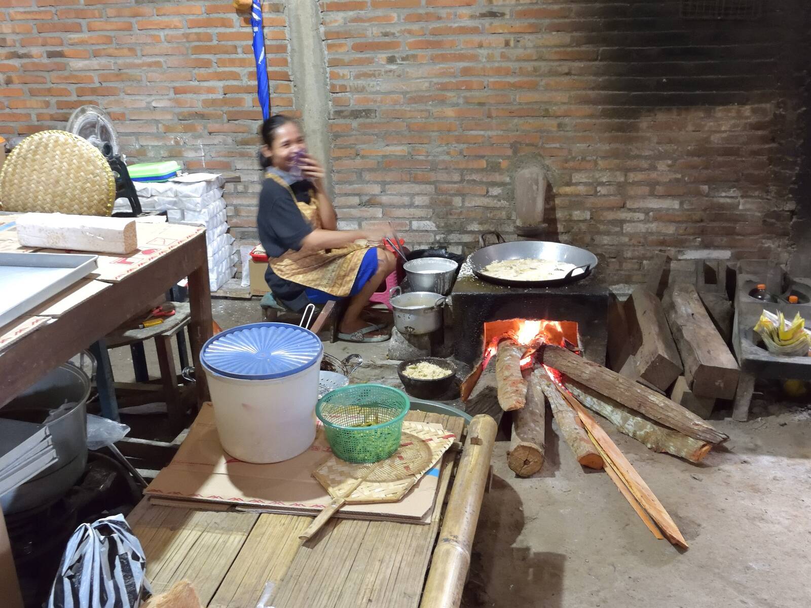 Hier werden Rengginang, das sind knusprige Reiscracker, auf traditionelle Art hergestellt.