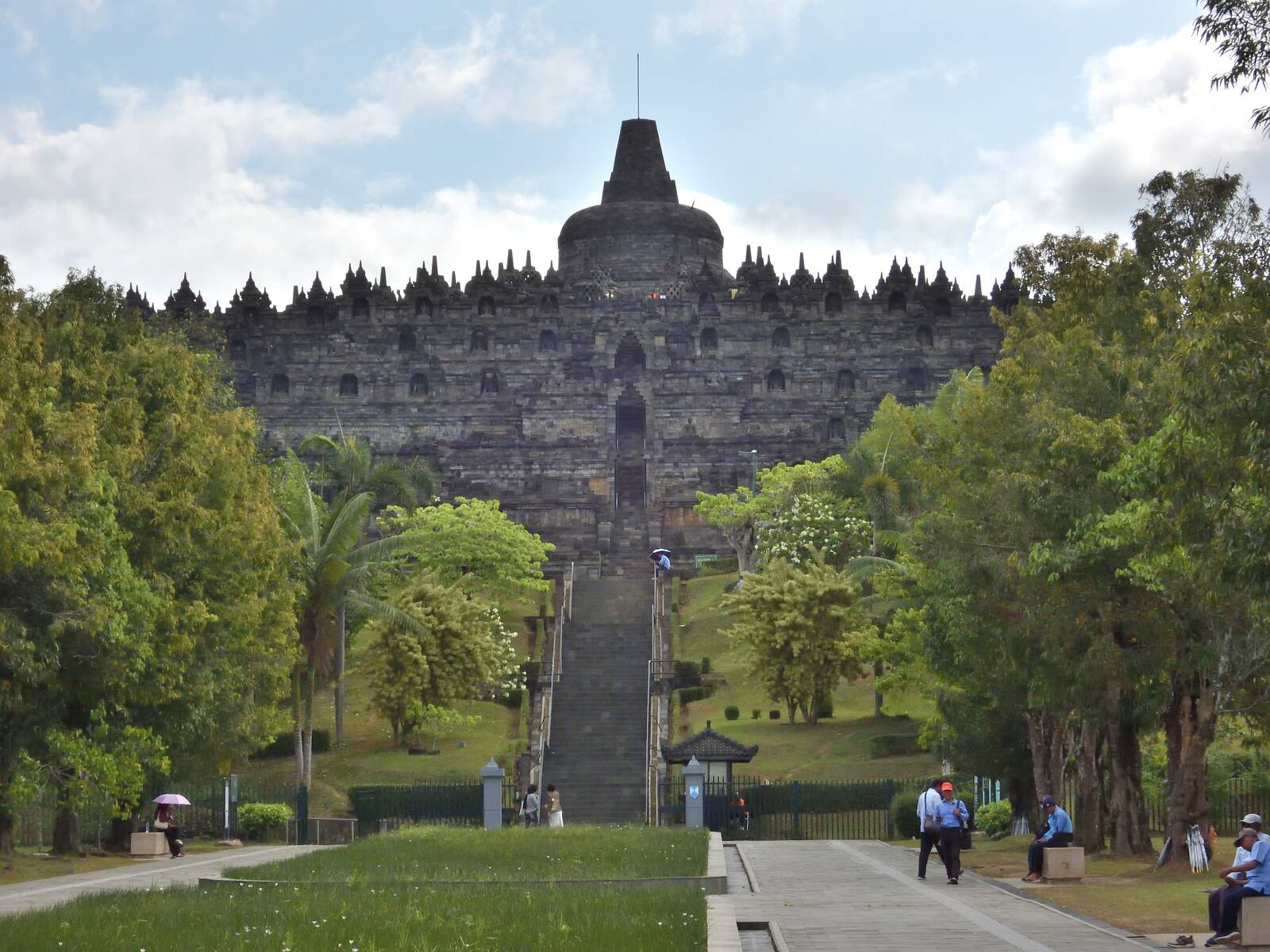 Es ist die größte buddhistische Tempelanlage der Welt. Auf vier Seiten führen Stufen und Aufgänge zur Spitze des Tempels.