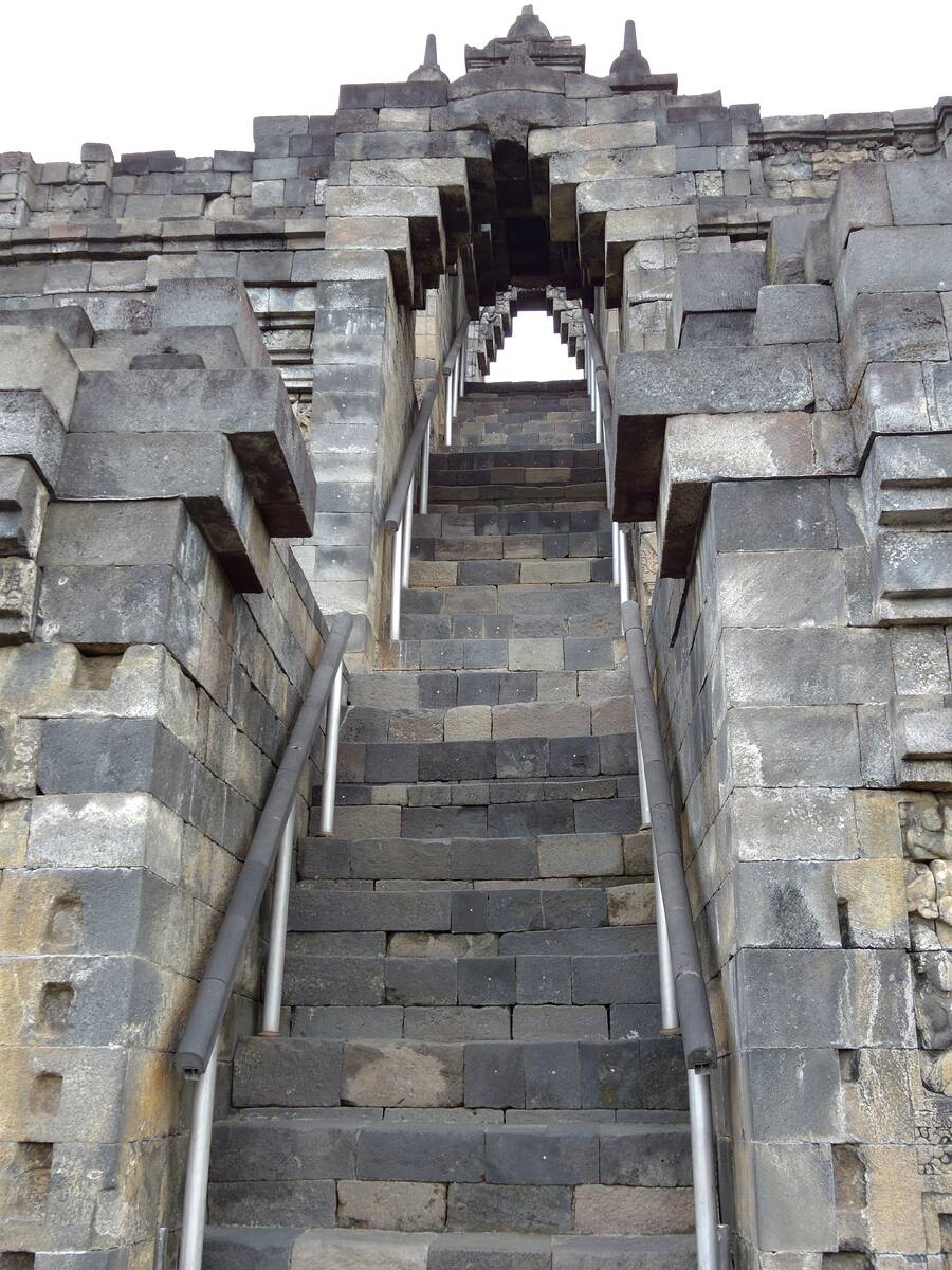 Der Aufstieg ist durch die unterschiedlich hohen Stufen sehr anstrengend.