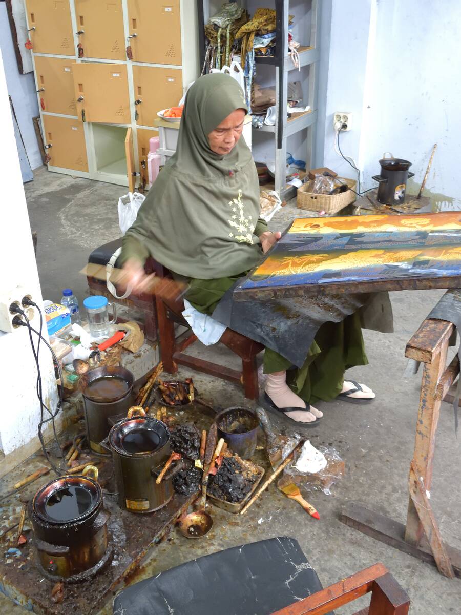 29.07.2025: Heute besuchen wir zuerst die Batik Seno Painting and Course Galerie und Werkstatt in Yogyakarta.