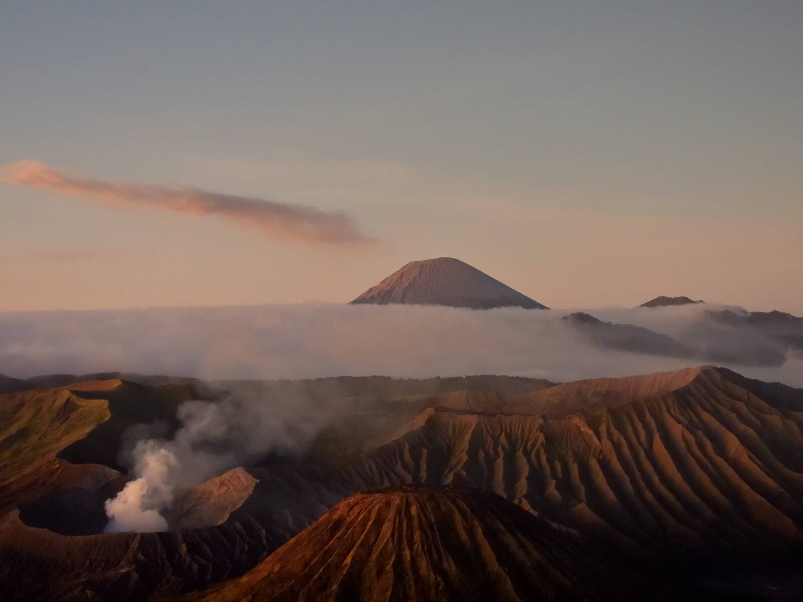 Vulkanlandschaft um 6:15 Uhr am Morgen.
