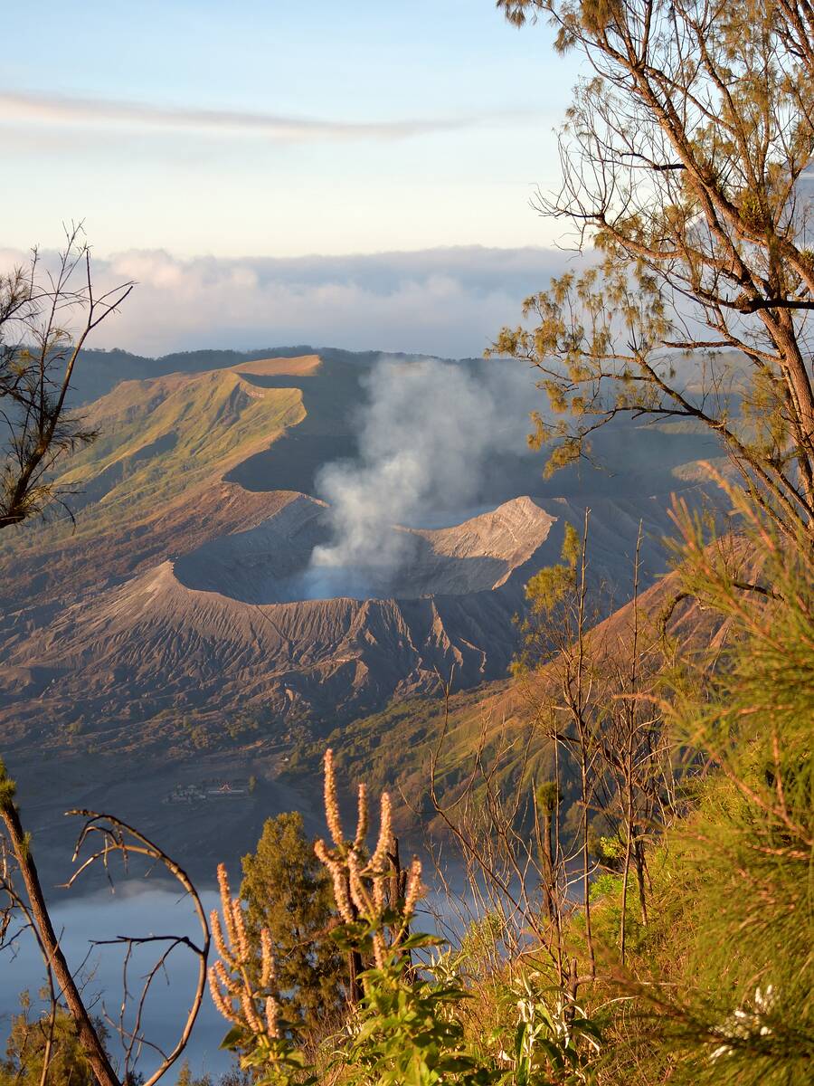 Dort sehen wir noch einmal den Bromo und bekommen heißen Tee zum Wärmen.