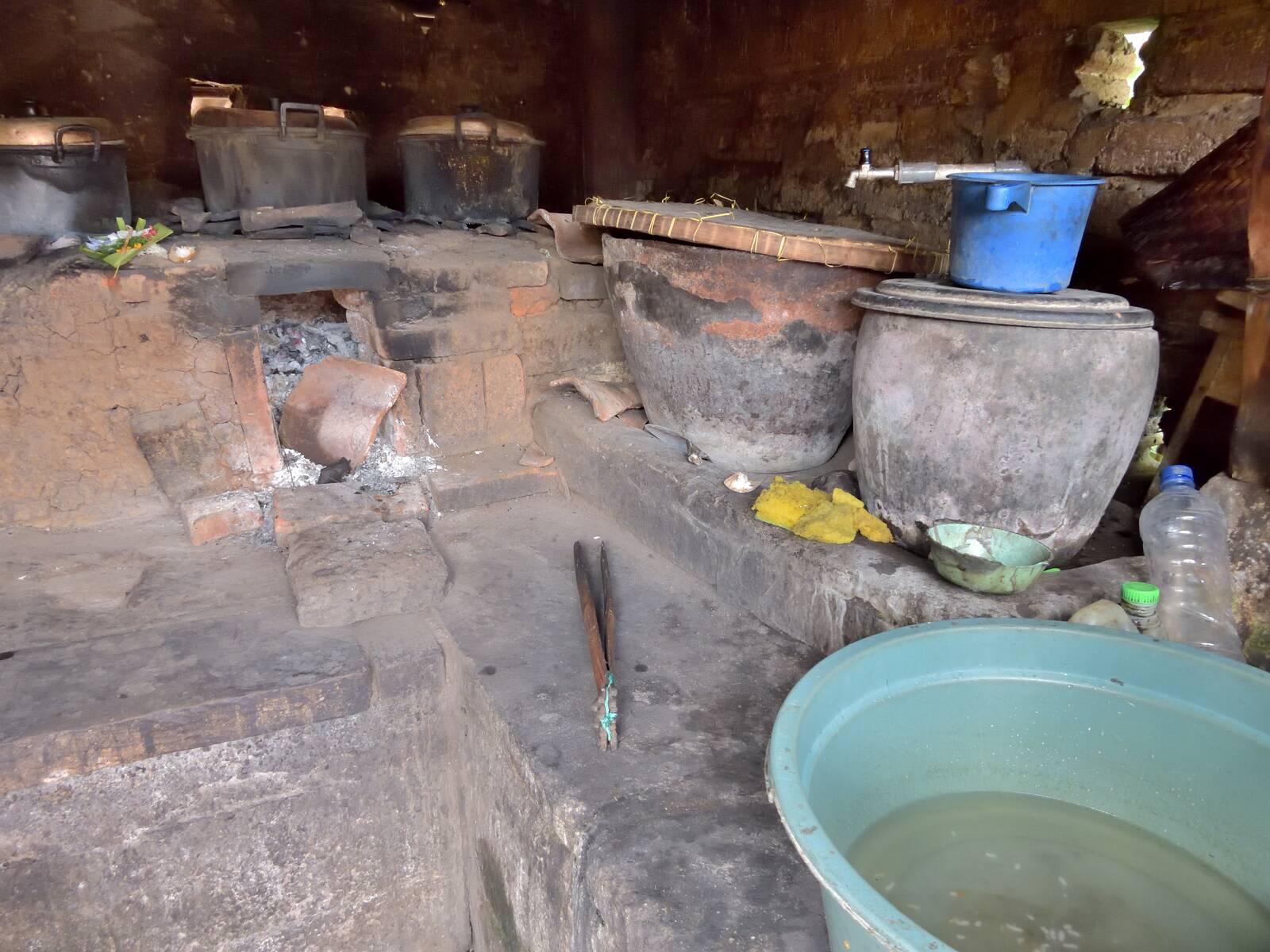 Die schwarze Küche. Wegen der Feuerstelle ist sie rußschwarz.