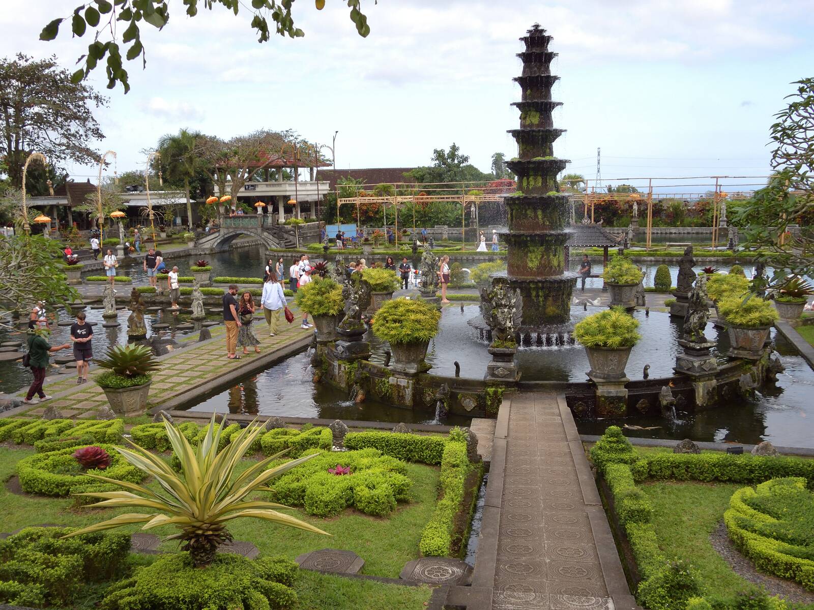In den Koiteichen gibt es Trittsteine, auf denen die Besucher durch die Wasserbecken gehen können.